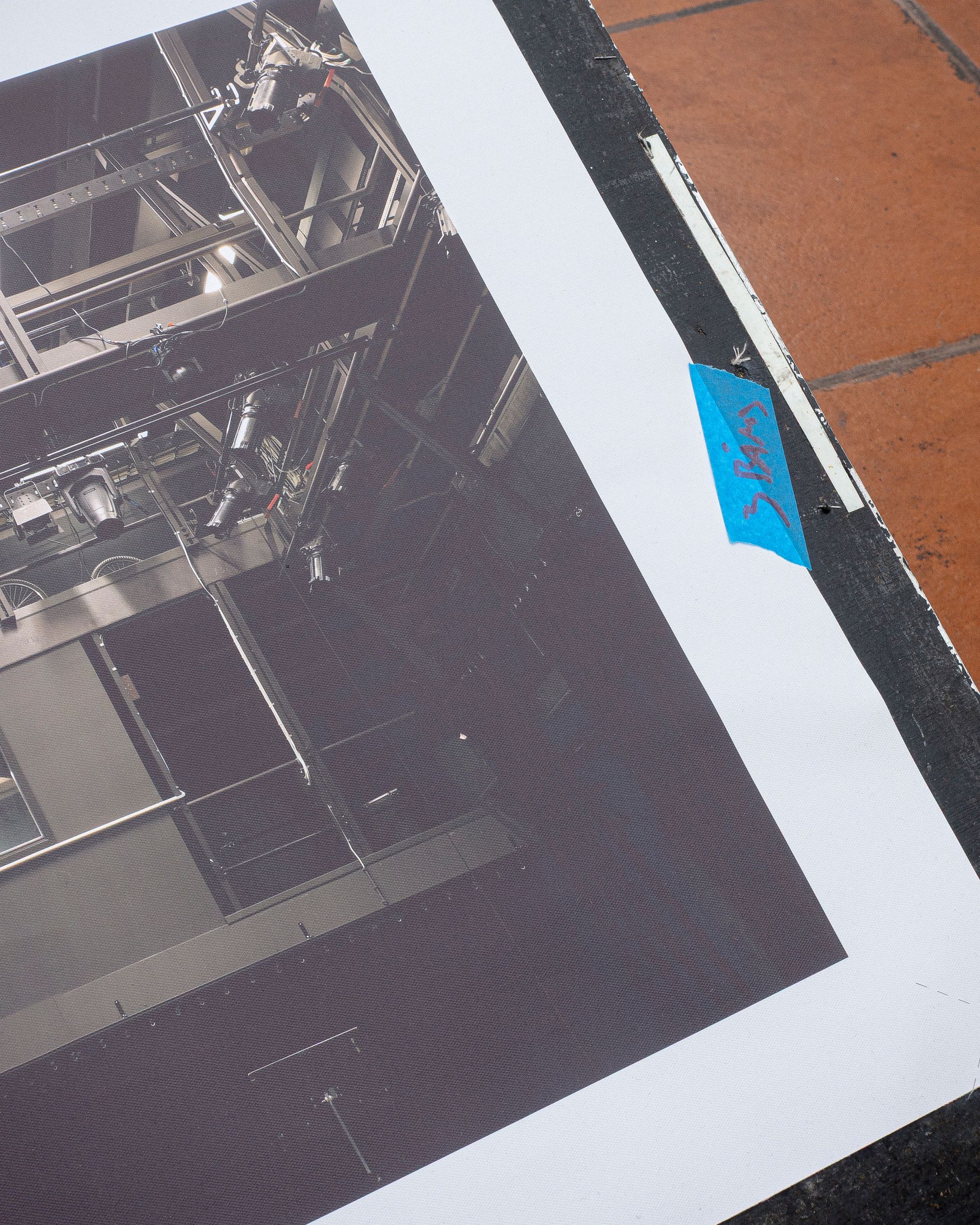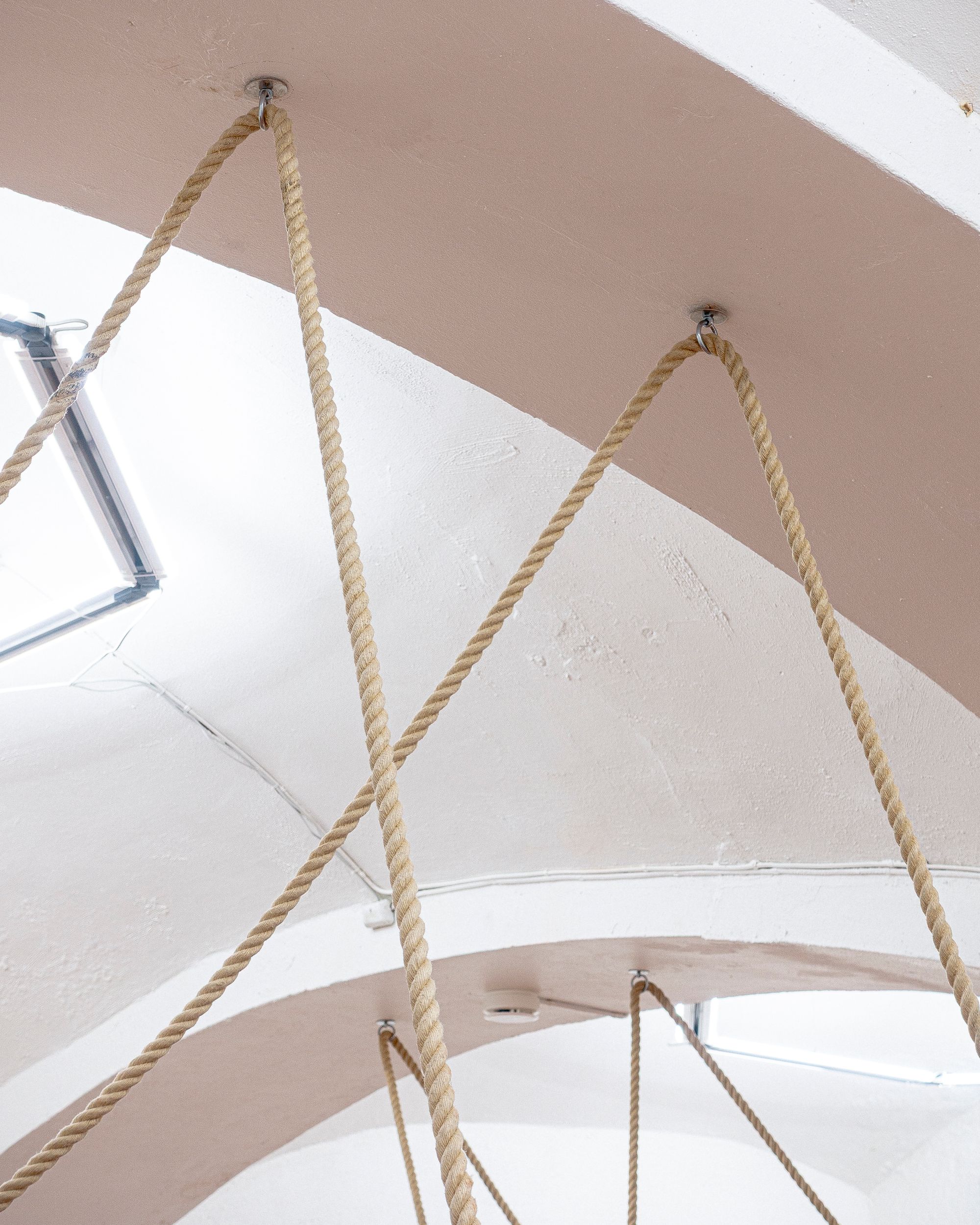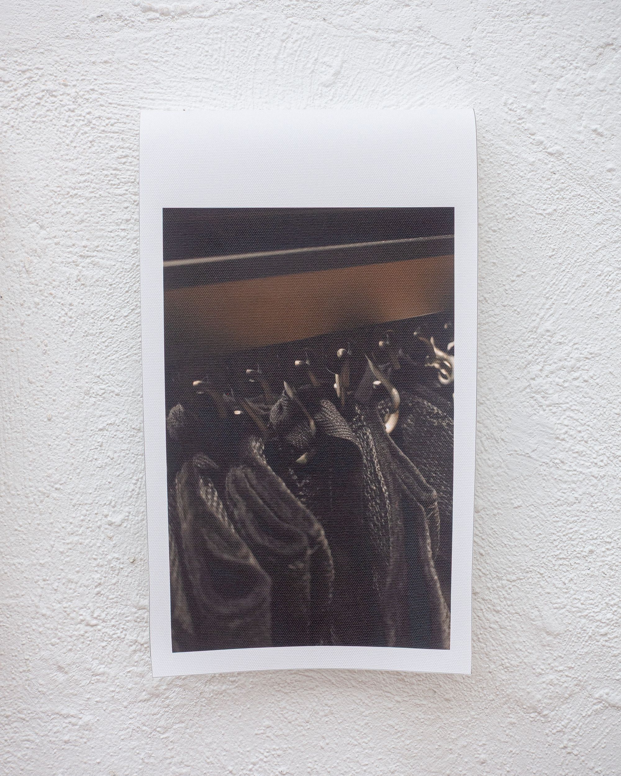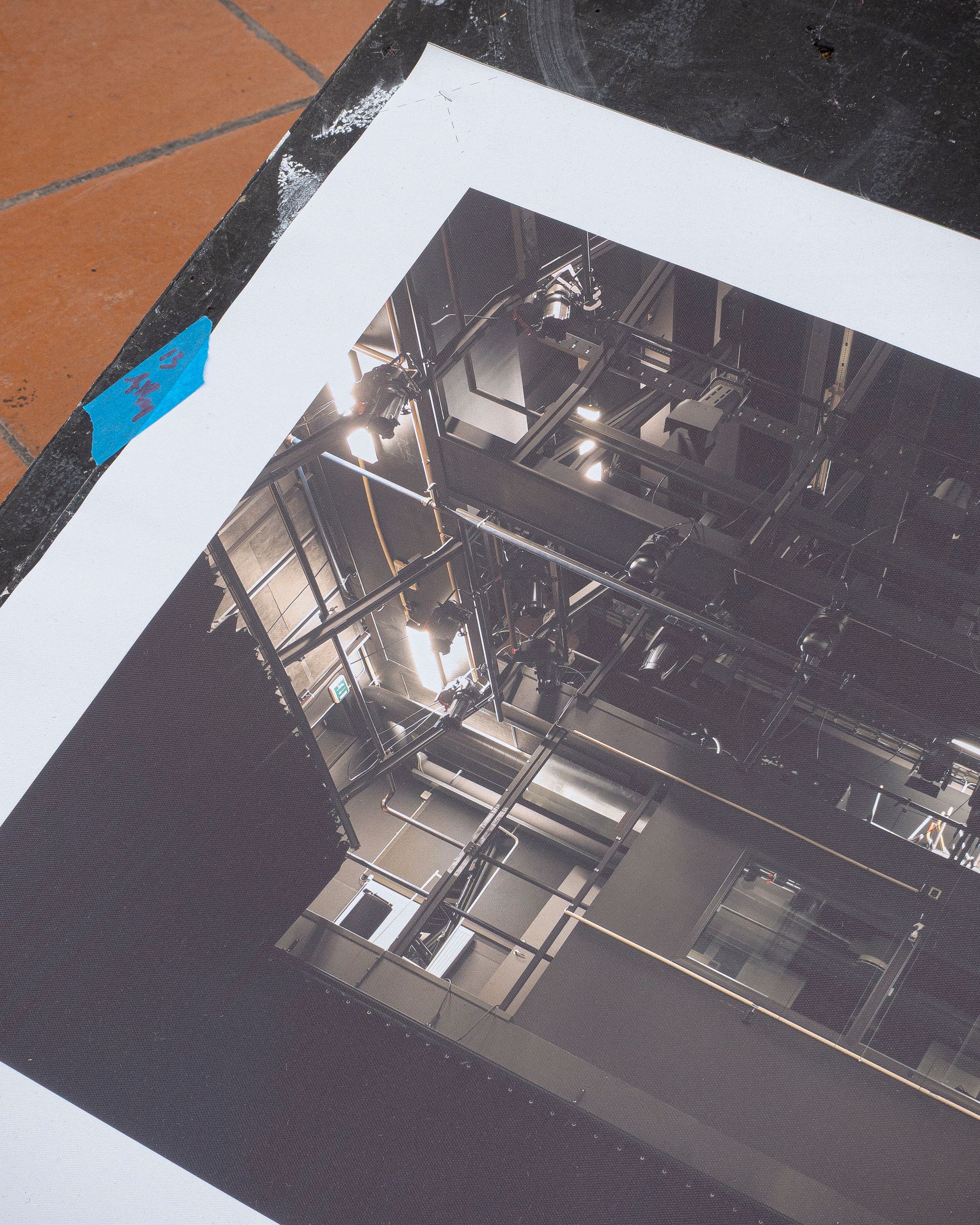 Theatre rope and photographs (inkjet on canvas) on stage elements