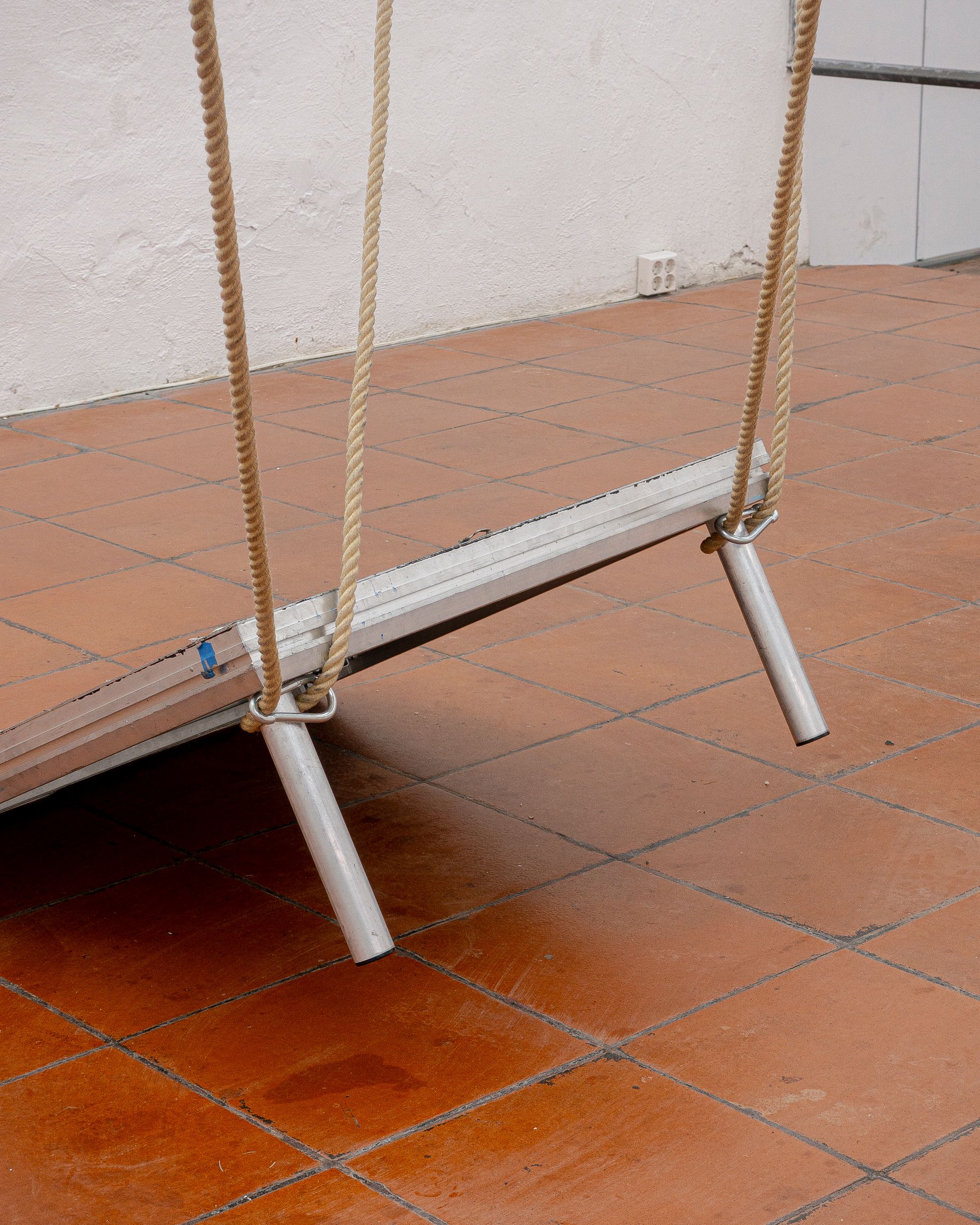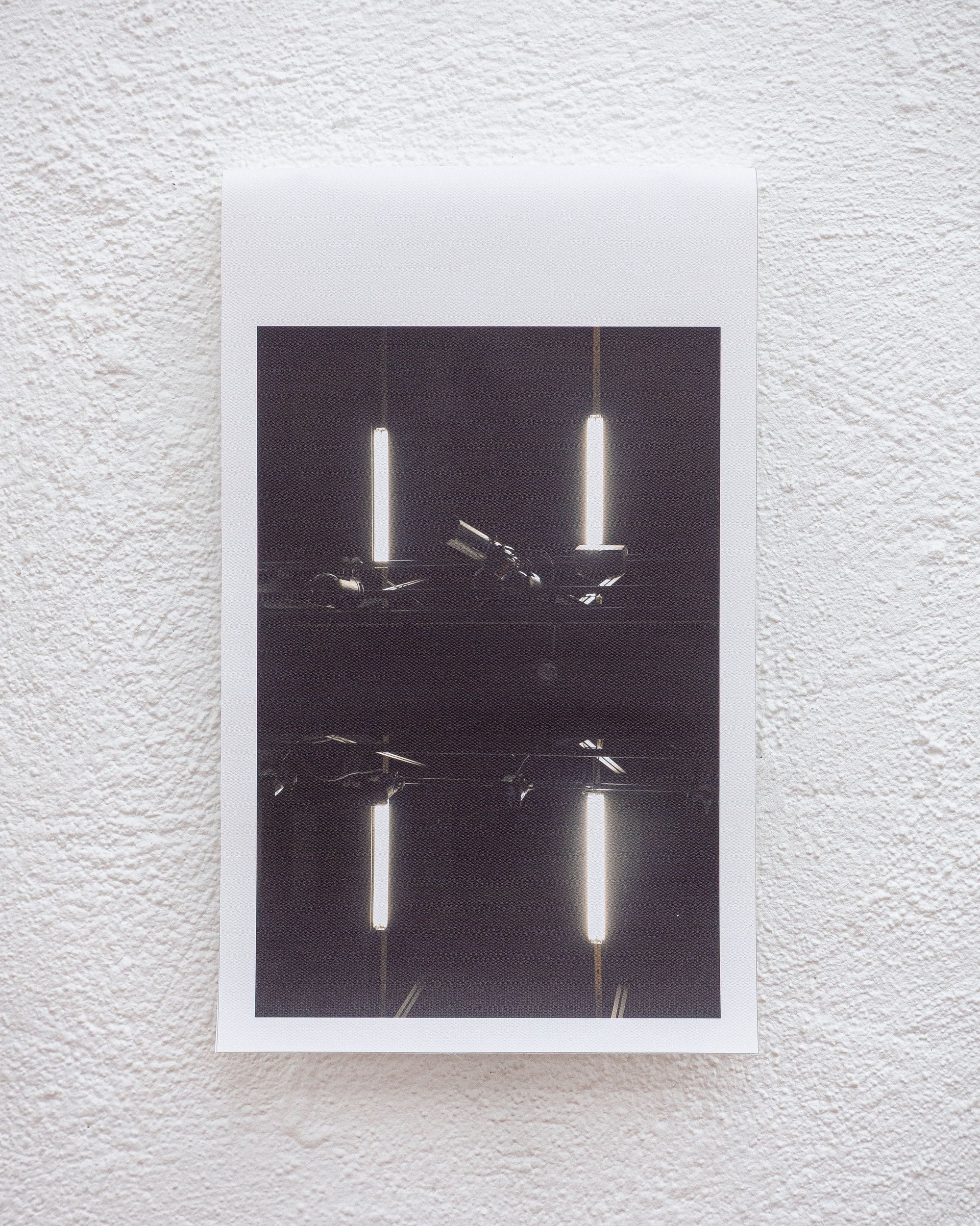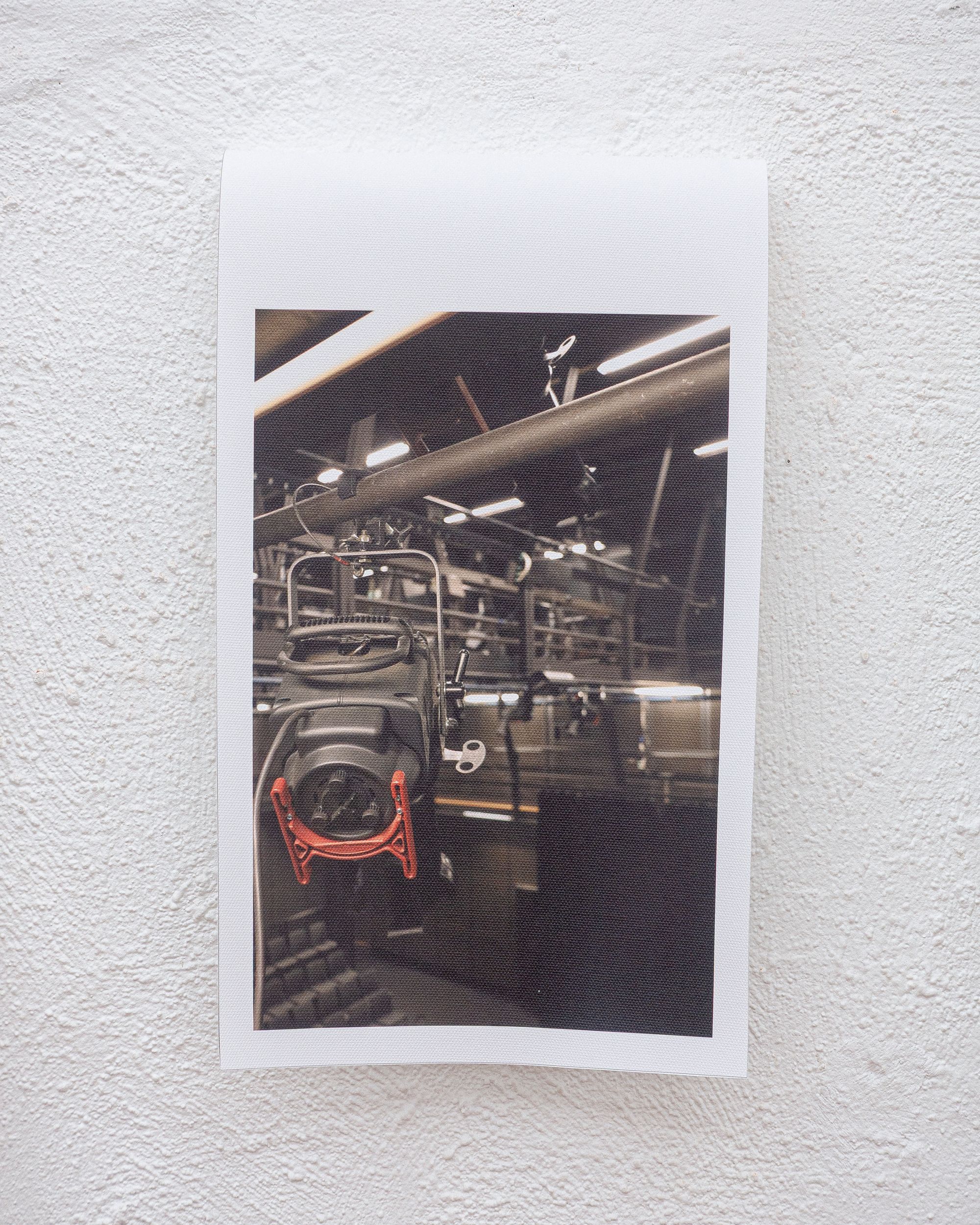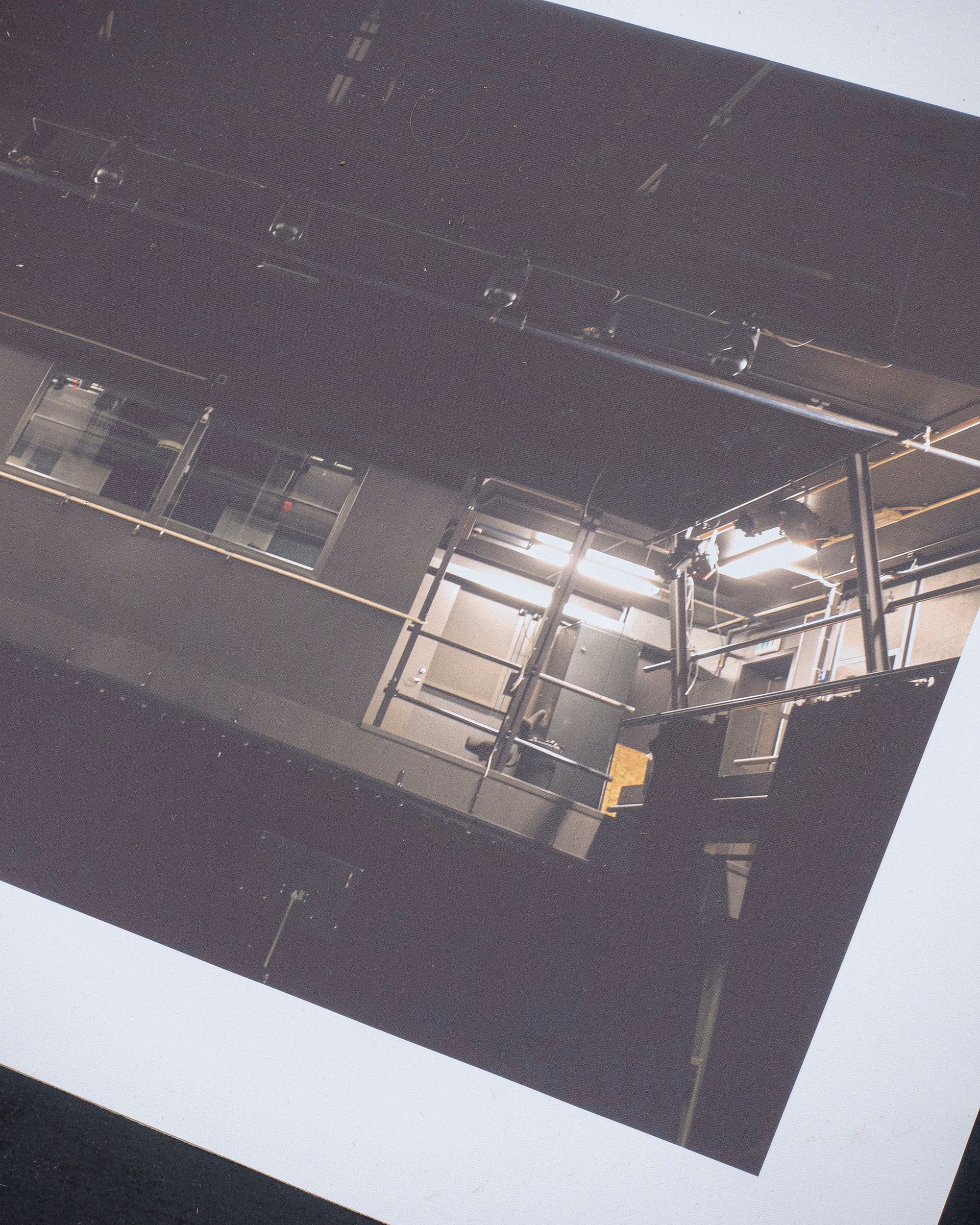 The exhibition Stanchions Don’t Thresh feels less like a show and more like the moment right before one. The good moment. A theatre emptied of performance but charged with its residue. Rope systems. Trusses. Tilted lightboxes suspended in quiet choreography. You enter the room, and it’s as if the walls are waiting to inhale. Or maybe exhale. The audience is already here, but there’s no script—only thresholds. It’s hard to say if you’ve arrived too early or too late.